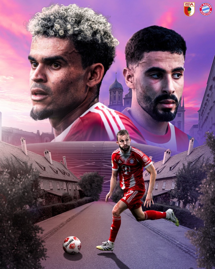 8月30日讯 德甲第二轮,拜仁将在客场对阵奥格斯堡,赛前拜仁发布官方海报。本场海报中,迪亚斯、莱默尔等东谈主出镜。