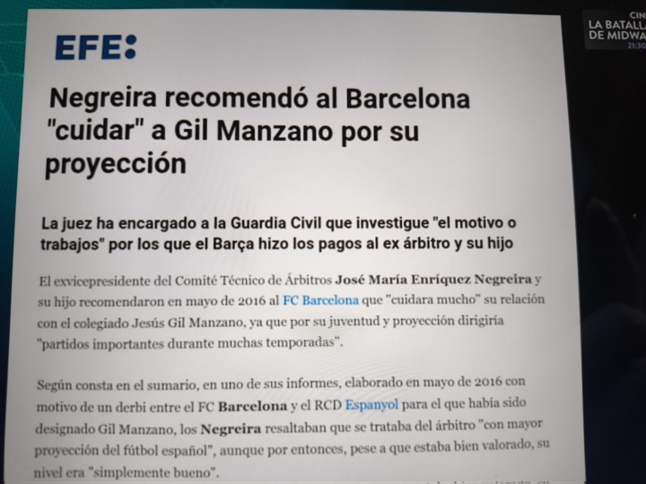前裁判时刻委员会副主席内格雷拉过火男儿曾在2016年5月向巴萨提议应多加调整与裁判赫苏斯-曼萨诺的关连,因其年青且有发展后劲,改日多个赛季将国法紧迫比赛。