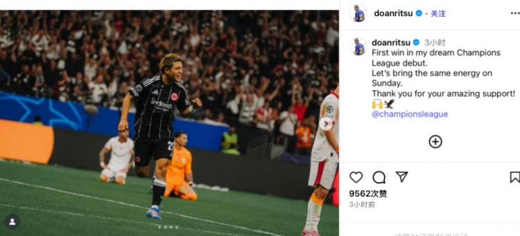 赛后堂安律在社媒晒出比赛照,悼念我方的欧冠首秀,他写说念:“欧冠首秀如梦似幻,而况告成取胜。让咱们将这股势头带到周天的联赛吧。感谢你们柔软似火的因循!”