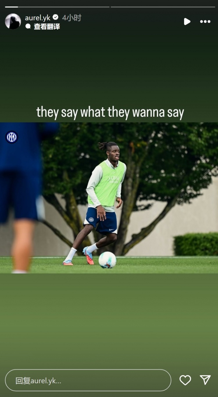 比塞克社媒晒出考验相片,配文:“他们念念说什么就说什么。”并配上了国米的队徽。