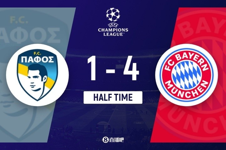 上半场莫得伤停补时,半场端正,拜仁暂4-1帕福斯。
