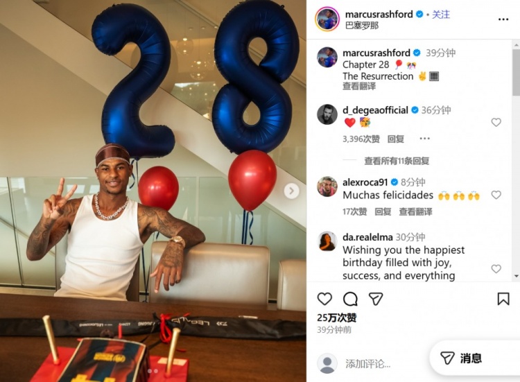 28岁生快!拉什福德社媒晒诞辰庆祝照,配文:东说念主生第28章!新生!