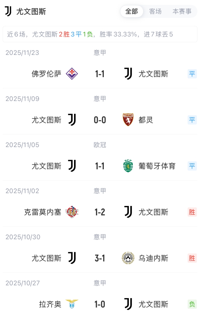 尤文首发:1-佩林、15-卡卢卢、6-凯利、27-坎比亚索、8-库普梅纳斯、5-洛卡特利、21-米雷蒂、17-阿季奇、7-孔塞桑、22-麦肯尼、20-奥蓬达