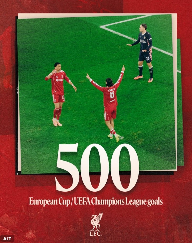 据统计,这粒进球亦然利物浦在欧冠/冠军杯打进的第500粒进球。