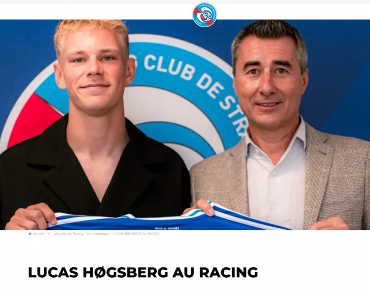 8月9日讯 斯特拉斯堡官方音书,俱乐部签下北西兰的19岁丹麦国脚卢卡斯-霍斯贝里,两边签约至2030年。