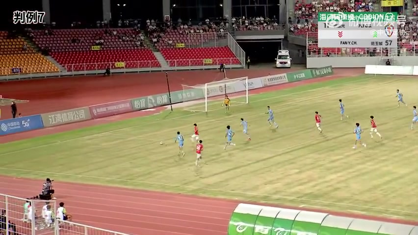 判例七:中乙联赛第23轮,海门珂缔缘VS广西恒宸。比赛第88分钟,海门珂缔缘57号队员接本方传球伏击至对方罚球区,广西恒宸21号队员铲球,随后海门珂缔缘57号倒地,评判员未判罚犯规。