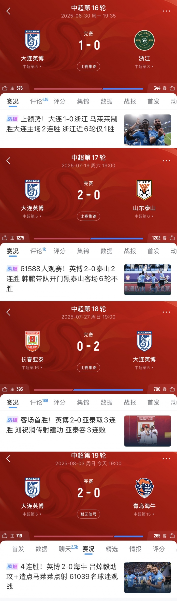 妖魔主场!大连英博联赛&主场4连胜 零封浙江、泰山、亚泰、海牛