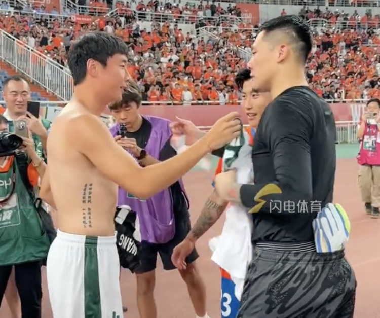 8月31日讯 据闪电体育报说念,今晚京鲁大战后,王大雷和李磊两名国脚交换了球衣。