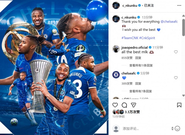 恩昆库社媒写说念:“感谢切尔西俱乐部所作念的一切,为你献上最好意思好的道贺!”