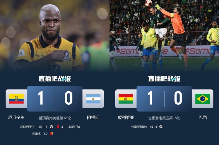 09月10日讯 世初赛南好意思区收官战,阿根廷0-1客负厄瓜多尔,巴西0-1客负玻利维亚。