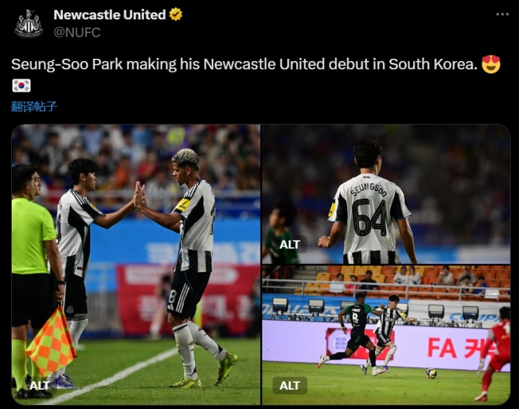 7月30日讯 在对阵K联赛全明星队的比赛中,纽卡18岁韩国边锋朴升秀完成一线队首秀。