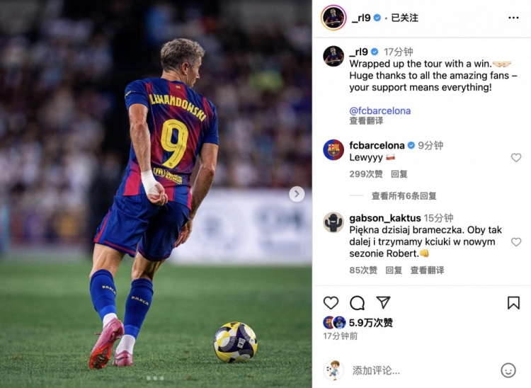 赛后,莱万更新社媒向球迷致谢:以一场奏效圆满截止巡回赛。🤜🏻🤛🏻真心感谢扫数了不得的球迷,你们的因循对咱们真理要紧!