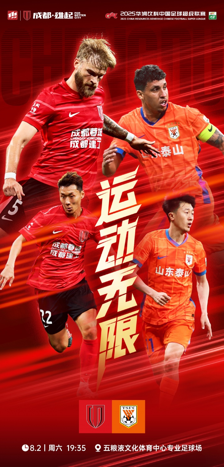 截至赛前,成都蓉城11胜4平3负积37分,排名中超积分榜第4;山东泰山8胜4平6负积28分,排名中超积分榜第5。两队本赛季中超、足协杯前两次交手,蓉城3-0、3-1泰山取得两连胜。