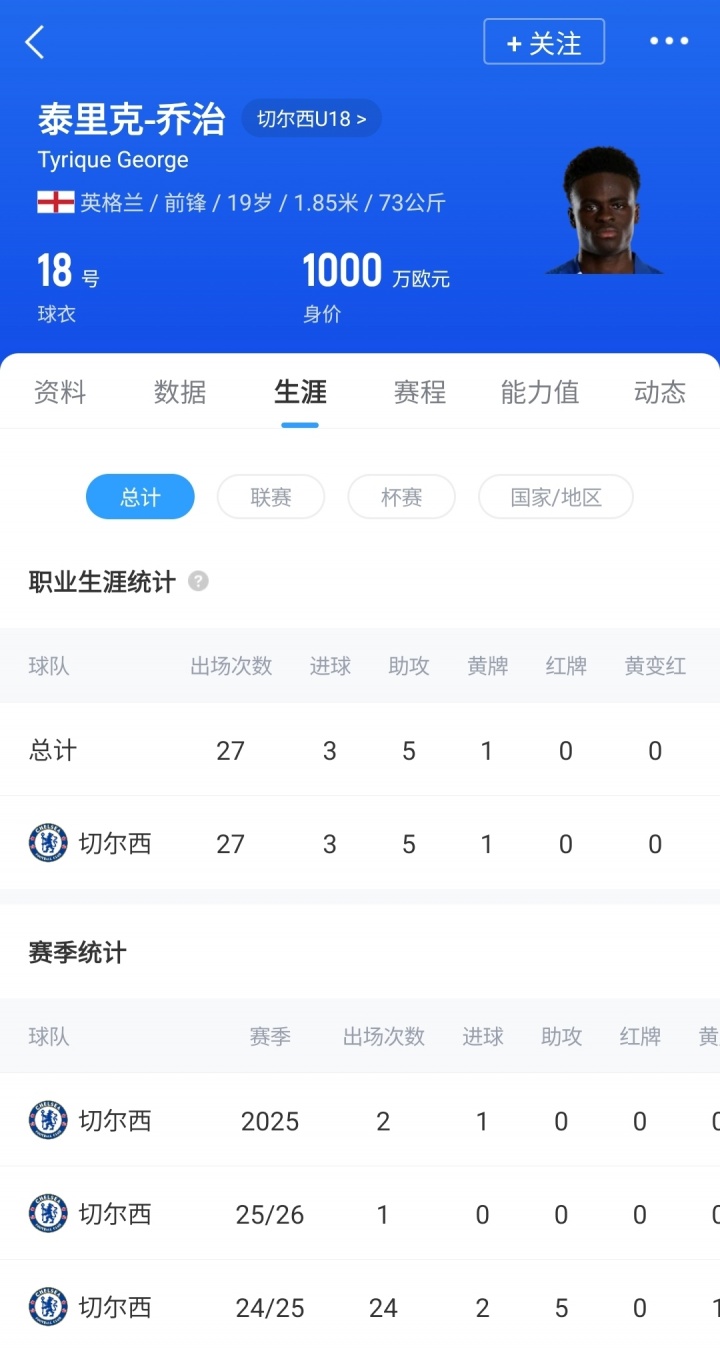 DO独家:富勒姆签19岁切尔西小将乔治达协议 转会费2200万镑+二转