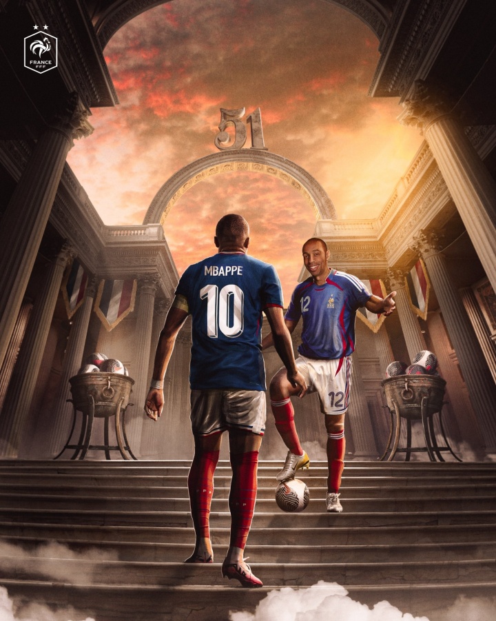 09月06日讯 世预赛欧洲区,法国2-0击败乌克兰。姆巴佩本场比赛打入一球,国家队进球数追平亨利,仅差法国射手王吉鲁(57球)6球。