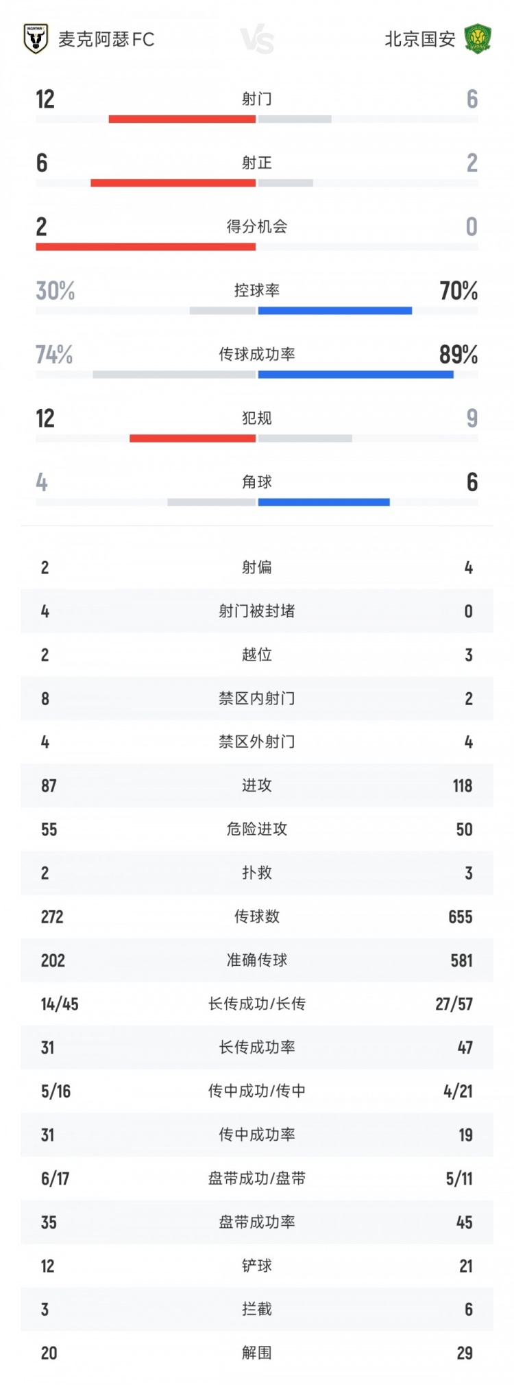 3-0国安!麦克阿瑟主帅:对手很优秀,我们控球少但能限制对方