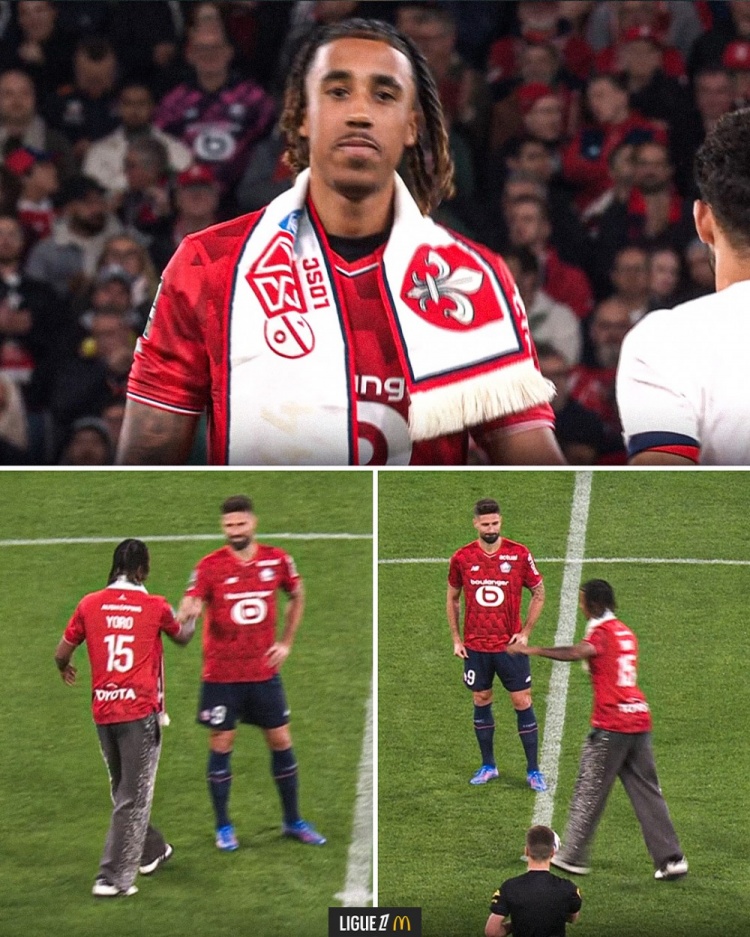 约罗身穿里尔球衣,担任里尔vs巴黎比赛开球嘉宾