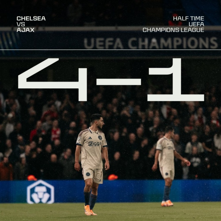 10月23日讯 本轮欧冠焦点战,切尔西在主场上半场4-1痛击阿贾克斯。