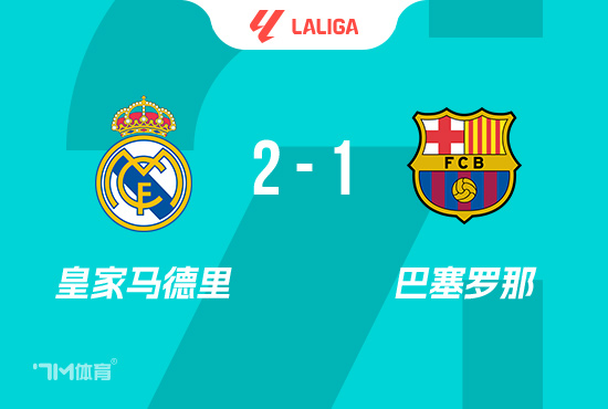 全场比赛结束,皇家马德里主场2-1战胜巴塞罗那。