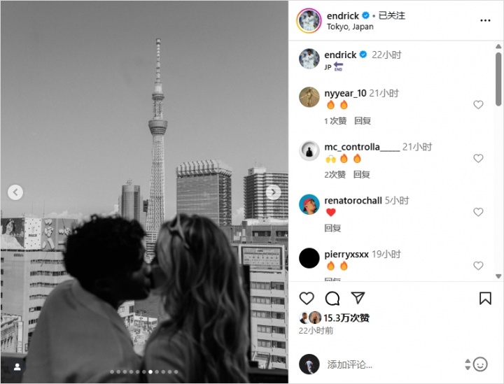 7月18日,恩德里克在他的个人社媒上发布了他的婚礼照,随后便于妻子开启了他们的蜜月旅行。