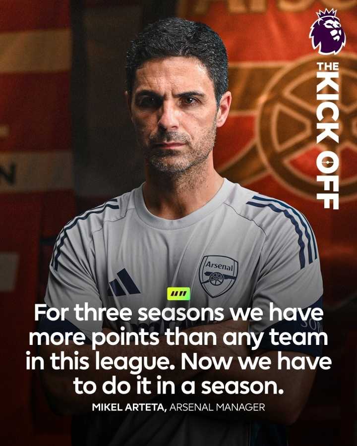 阿尔特塔在发布会上说说念:“三个赛季以来,咱们的积分比联赛中任何其他球队皆多,这是令东说念主难以置信的。这便是咱们长期保握知晓推崇的原因。”