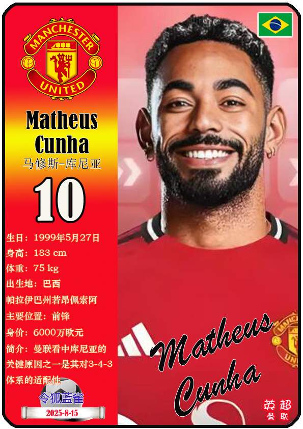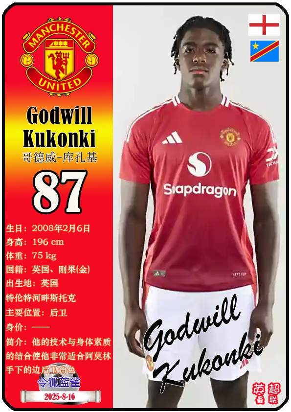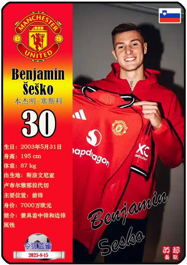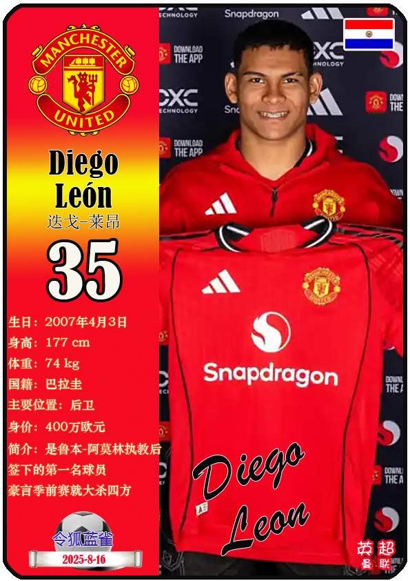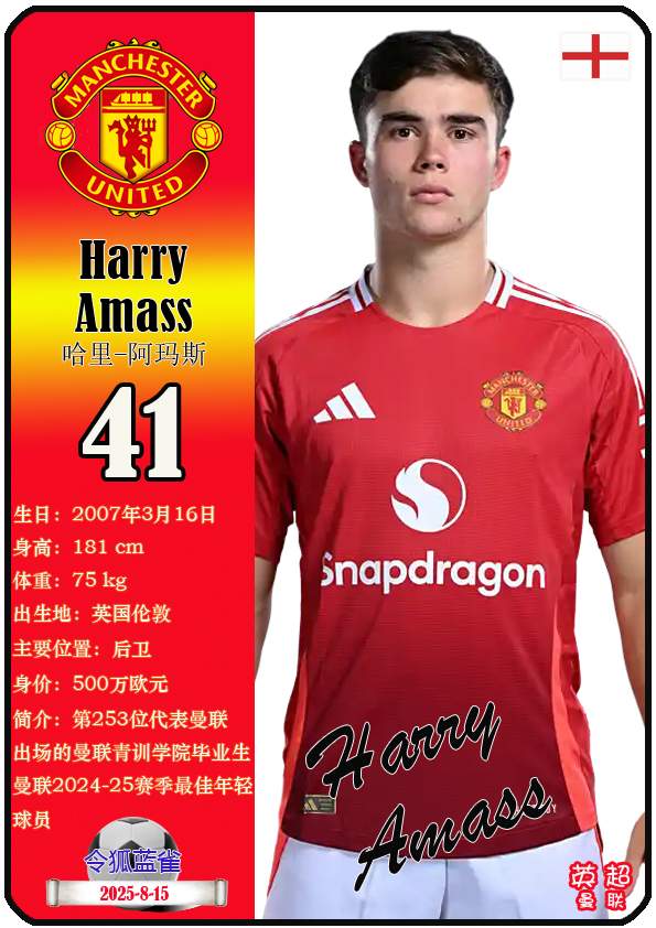 球星卡(英超): 曼联足球俱乐部33东谈主一览(25/26赛季)