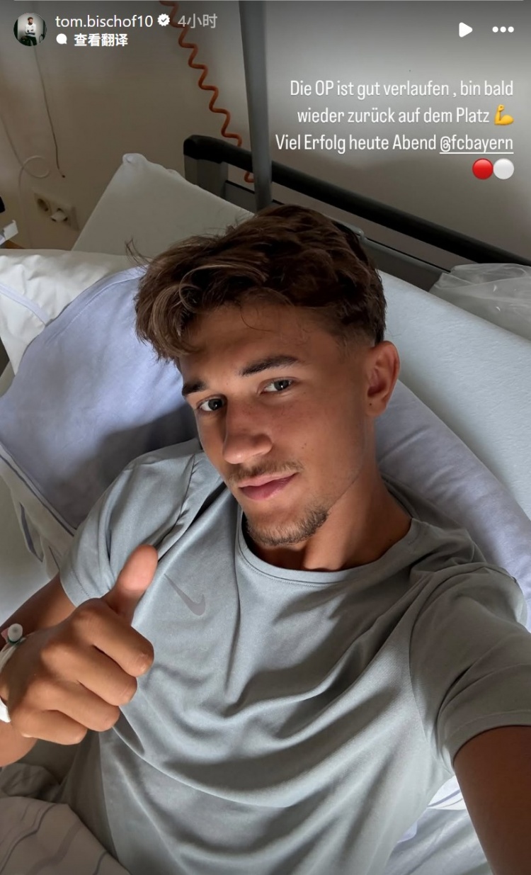 比朔夫在社媒配文写谈:“手术荒谬顺利,我会很快追思。祝球队今天的比赛好运!”