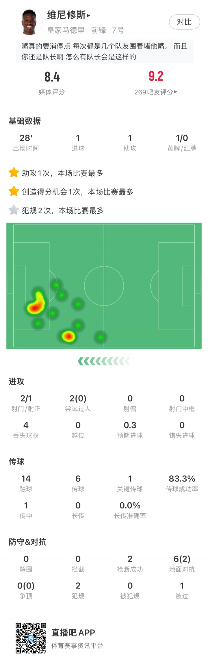 温暖进球荒!维尼修斯24年10月至昨日,在西甲客场比赛中未取一球