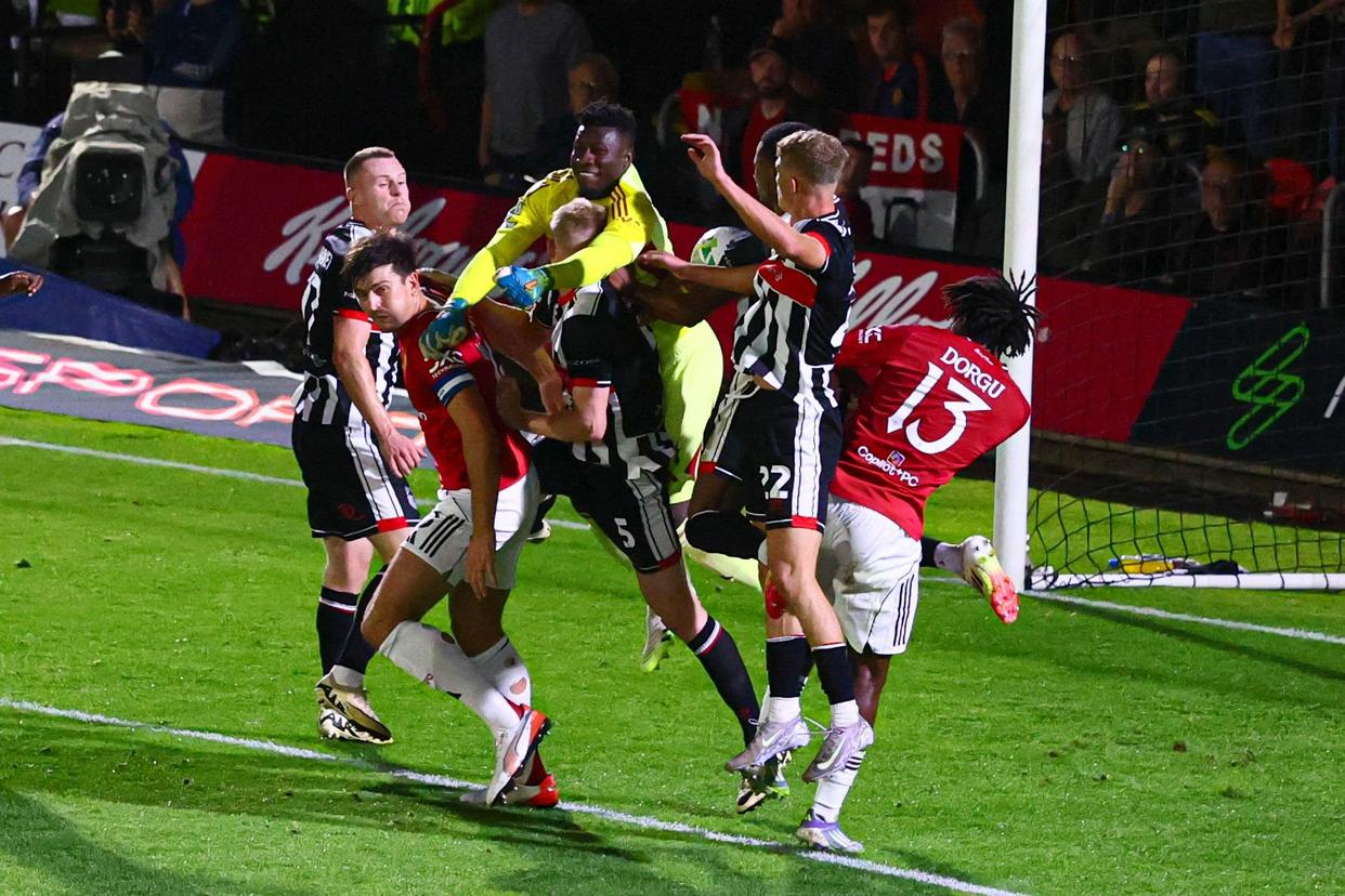 在布伦德尔公园球场,曼联碰到了一场令东谈主惶恐的失利:上半场,奥纳纳两次不实站立,让这支英乙球队早早得到两球高出。