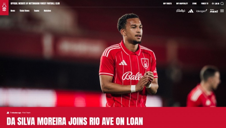 官方:诺丁汉丛林右后卫莫雷拉租赁至葡超里奥阿维,租期一个赛季