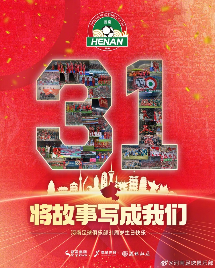 三十一年风雨兼程,广大的诚笃与疼爱,托举着河南足球,续写对于绿茵梦念念的故事。今天,让你我蕴蓄力量,祈福俱乐部31周岁寿辰现象,将故事写成咱们