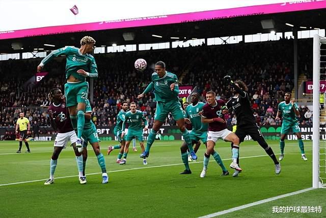 第7分钟,赫拉芬贝赫中场传球无理,伯恩利踢出快速反击协作,杰登-安东尼禁区外突施暗箭,略微向上横梁,利物浦逃过一劫。