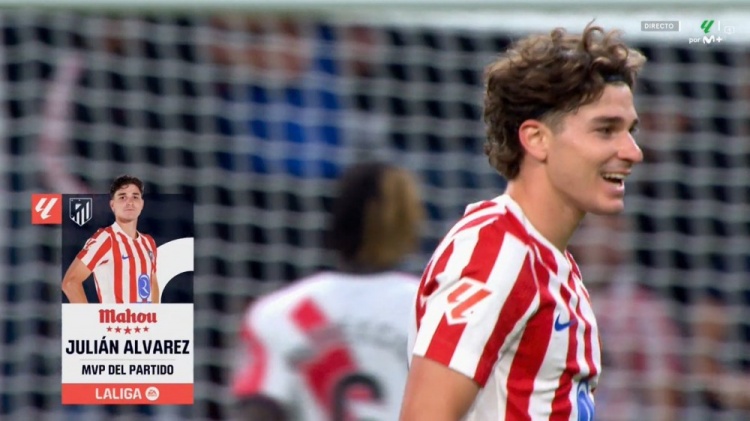 9月25日讯 2025-26赛季西甲联赛第6轮,马竞主场3-2投诚巴列卡诺。阿尔瓦雷斯首发出战,献艺帽子戏法,赛后当选为全场最好球员。