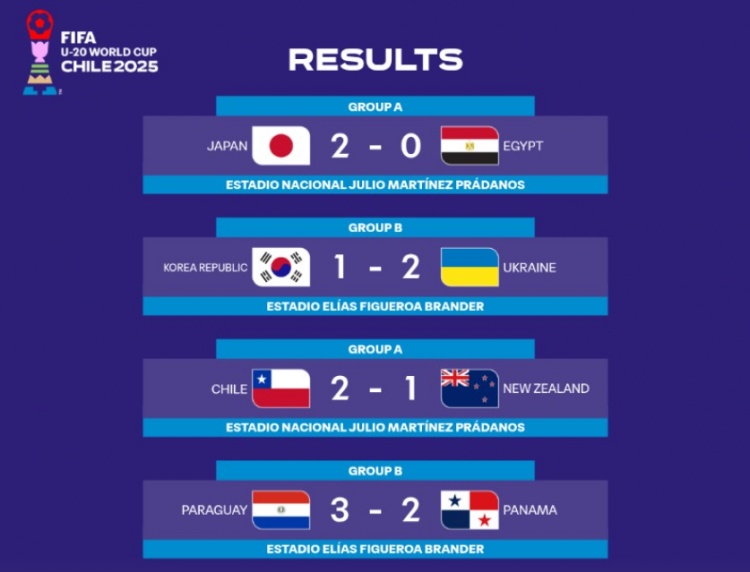 U20寰宇杯首日赛果:人智利取胜,日本获开门红、韩国输球
