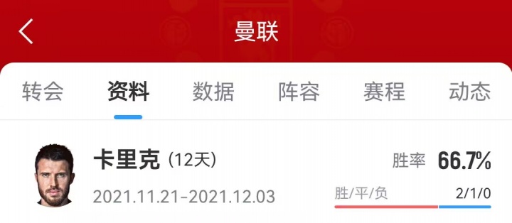 曼联2021年解老板帅索尔斯克亚后,卡里克曾良晌担任曼联的临时主帅。他带队的3场比赛保执不败,包括在欧冠中征服黄潜,以及联赛中征服阿森纳。