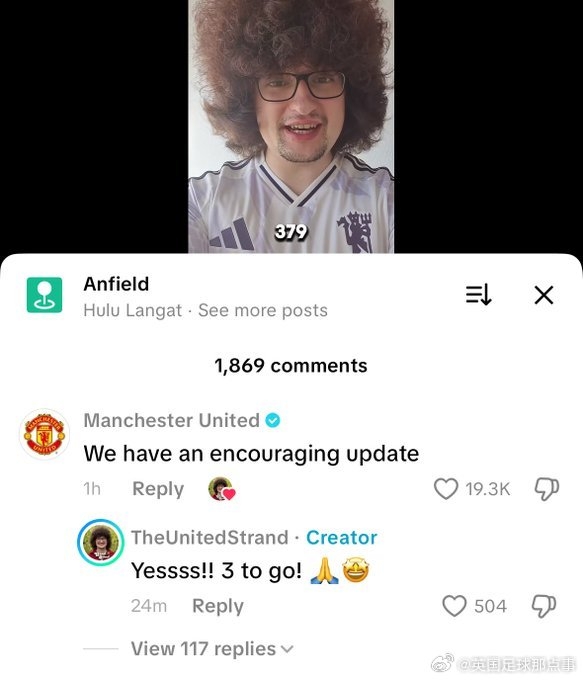 被官方翻牌了!曼联球迷“蓄发哥”曾立誓主队5连胜才剃头,昨晚绝杀利物浦得回两连胜后,曼联官媒点赞褒贬了他蓄发379天的视频: