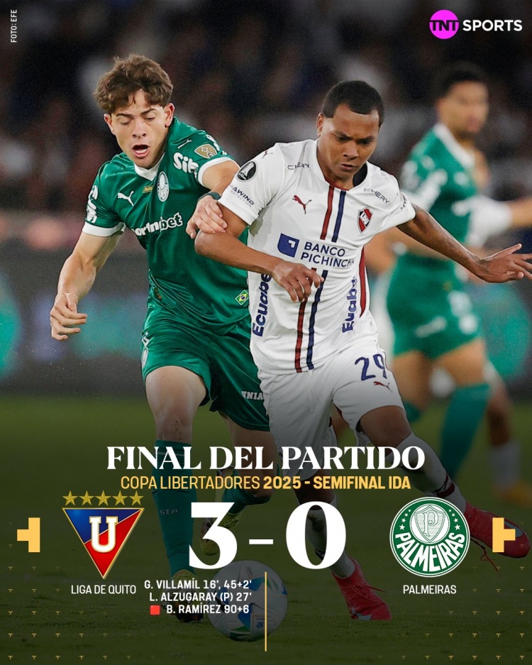 幽静者杯半决赛首回合,基多体育大学3-0打败帕尔梅拉斯霸占先机