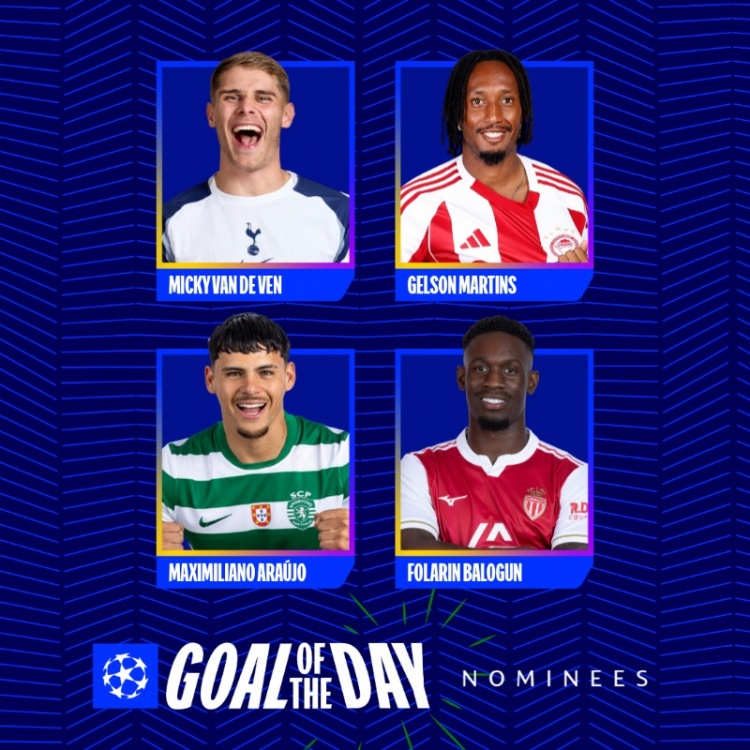 11月5日讯 当天9场欧冠比赛战罢,欧冠官方列出了最好进球候选名单。