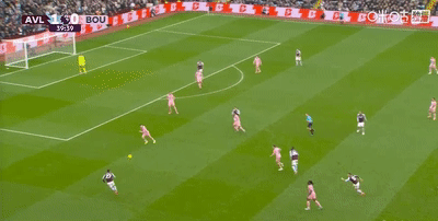 第40分钟,维拉前场围攻伯恩茅斯禁区,阿马杜-奥纳纳禁区外接球,拔脚就射,又是一脚寰宇波破门,维拉两球向上。