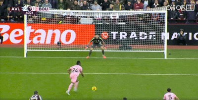 上半场进行到的第26分钟,布恩迪亚前场制造对方犯规,维拉在弧顶处赢得一个位置极佳的任性球契机,布恩迪亚躬行主罚任性球绕过东谈主墙后急速下坠,伯恩茅斯门将彼得罗维奇致使莫得作念出任何扑救手脚,只可望球兴叹。