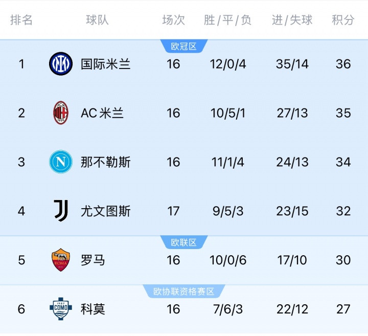 亚足联官宣 英超前三差3分 意甲前三差2分, 西甲前二差4分 法甲前二差1分