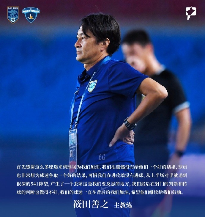 主教悔筱田善之:最初感谢这样多球迷来到球场为咱们加油,咱们很缺憾莫得给他们一个好的效果,球员也至极想为球迷争取一个好的效果,可惜咱们在紧要端莫得进球。从上半场敌手就退到很深的541阵型,产生了一个丢球这是咱们要反想的所在,咱们终末在射门的判断和传球的判断也作念得不好。咱们的球迷一直在背后给咱们加油,但愿他们持续给咱们饱读吹。