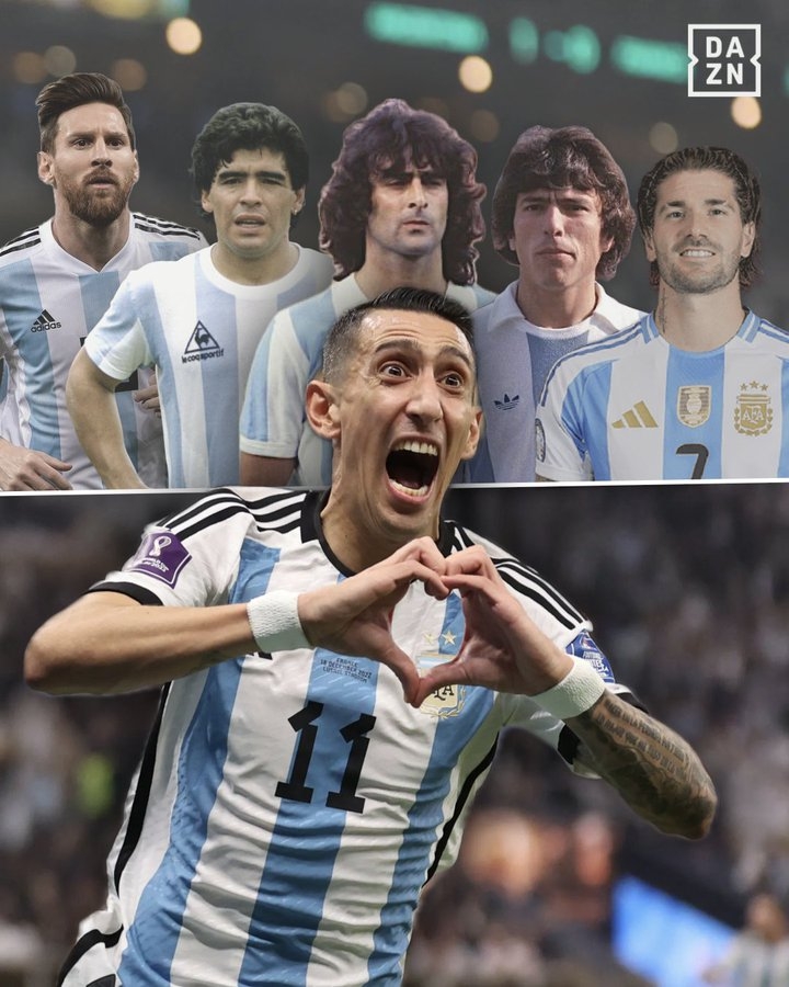 迪马利亚评阿根廷队史前5:梅西 老马 肯佩斯 帕萨雷拉 德保罗