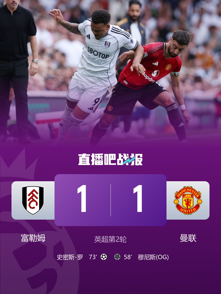 约罗头球变成穆尼斯乌龙,替补登场的史小姐-罗扳平比分,最终曼联1-1富勒姆,开赛两轮不堪。