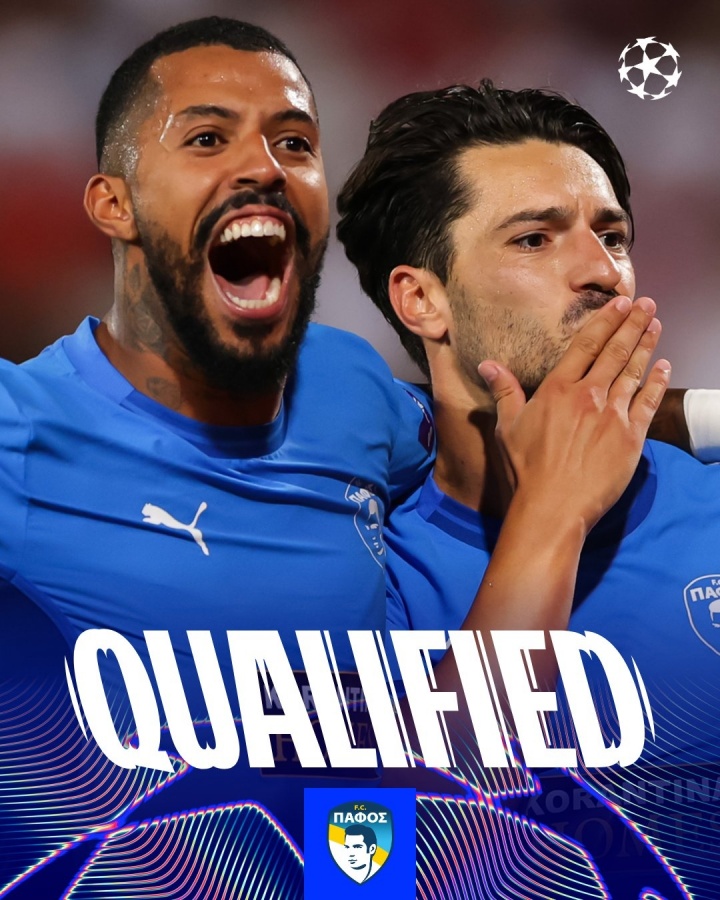 帕福斯两回合总比分3-2晋级,这家塞浦路斯俱乐部将初次在欧冠正赛亮相。