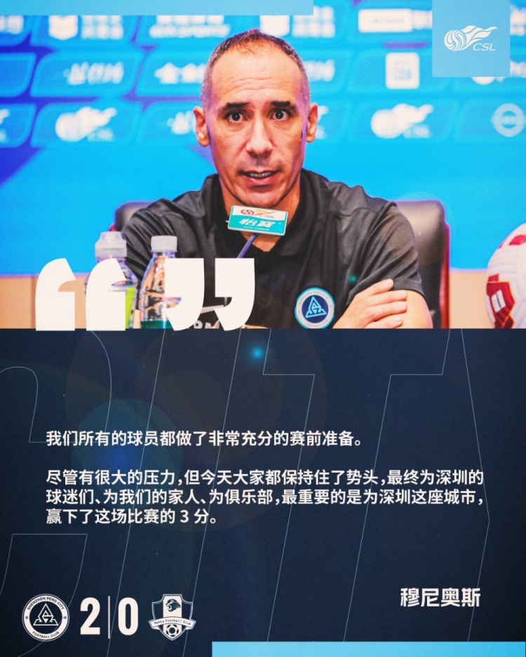 赛后新闻发布会上,主栽种佩普·穆尼奥斯示意:“咱们总共的球员齐作念了极端充分的赛前准备。尽管有很大的压力,但今天全球齐保合手住了势头,最终为深圳的球迷们、为咱们的家东说念主、为俱乐部,最遑急的是为深圳这座城市,赢下了这场比赛的3分。”