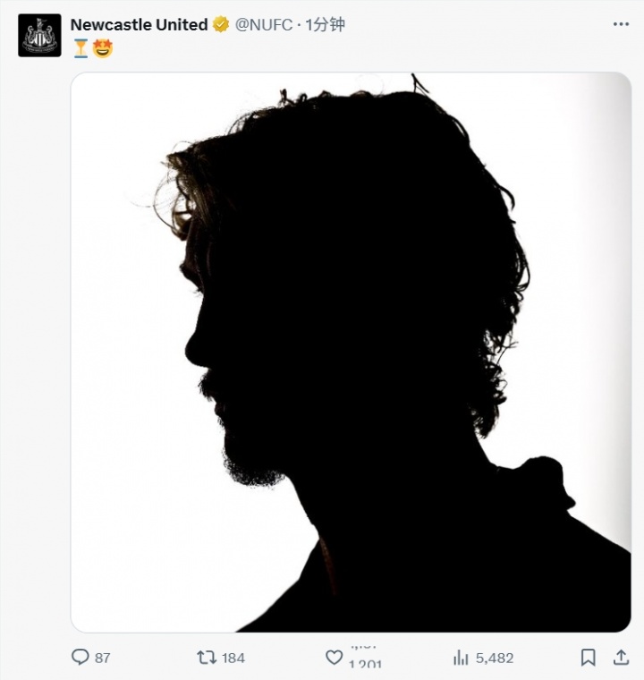 8000万新援官宣在即!纽卡社媒发布球员头像剪影:⏳🤩
