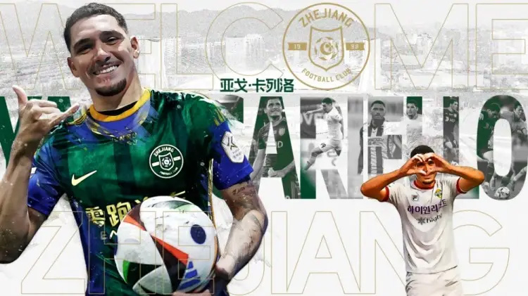 浙江队官方:从蔚山当代租赁巴西外助亚戈-卡列洛