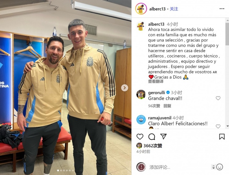 9月9日讯 皇马16岁门将卡斯特劳随阿根廷国度队训导,他在外交媒体上晒出与梅西的合照。