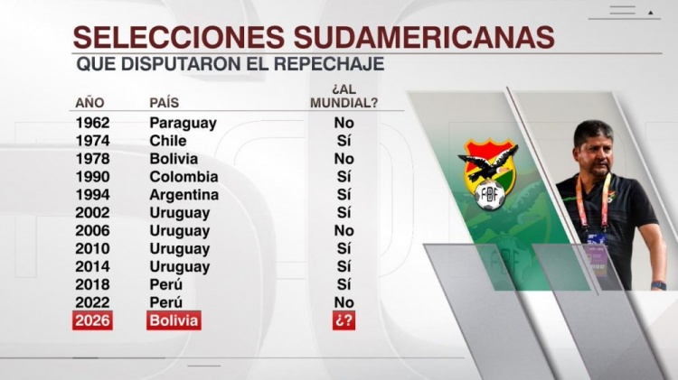 玻利维亚上一次插足附加赛是争夺1978年全国杯参赛经验,最终未能晋级。